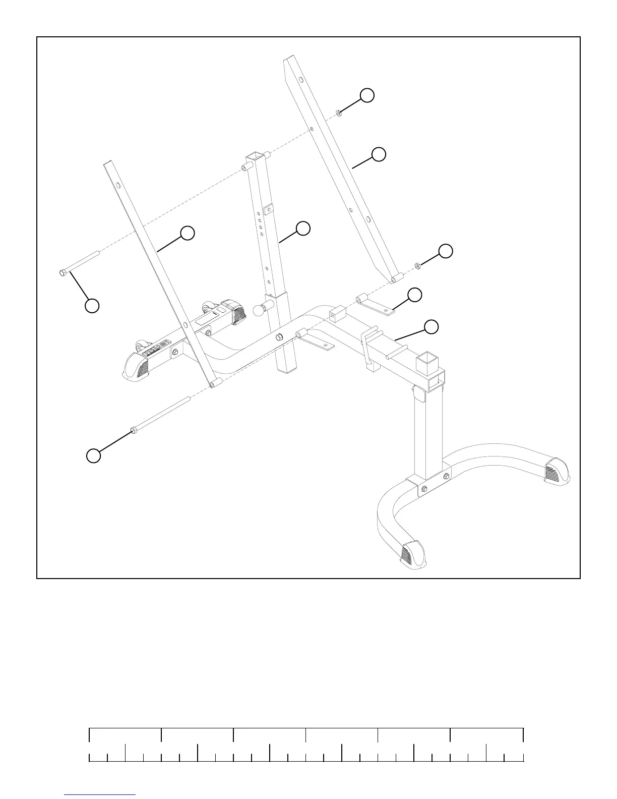 • Assemble the LEFT and RIGHT BACK PAD ANGLE (4 & 5) and two HINGE TABS (10) to the BENCH FRAME (1) using one 1/2 X 8”