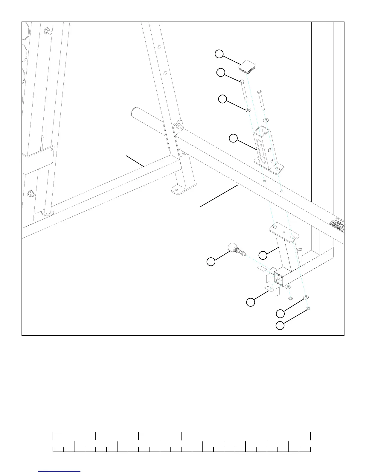 • LOOSELY assemble the PULLEY HOUSING (3) and the UPRIGHT (1) to the LOWER CROSS SUPPORT using two 3/8 X 4” BOLTS