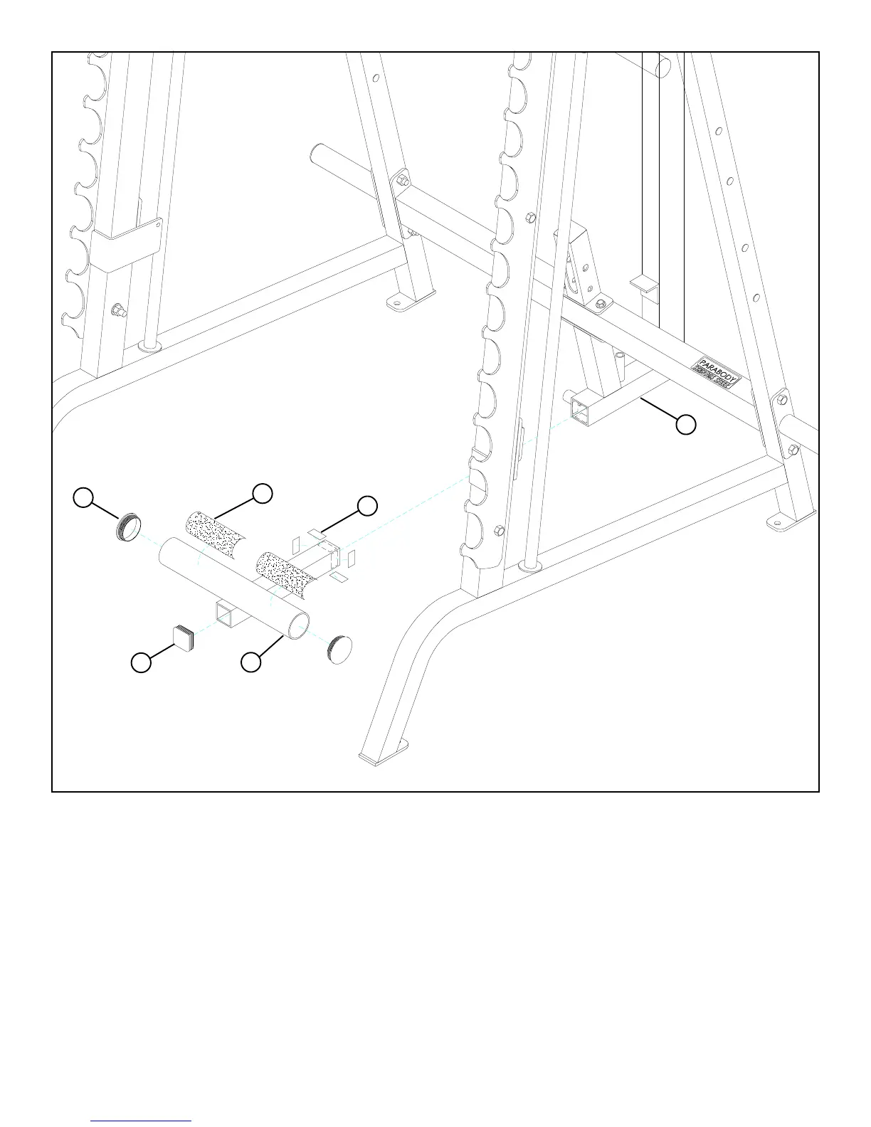 • Insert two 2-1/2” ROUND END CAPS (19) into the ends of the ADJ. FOOT SUPPORT (2) as shown in FIGURE 3.