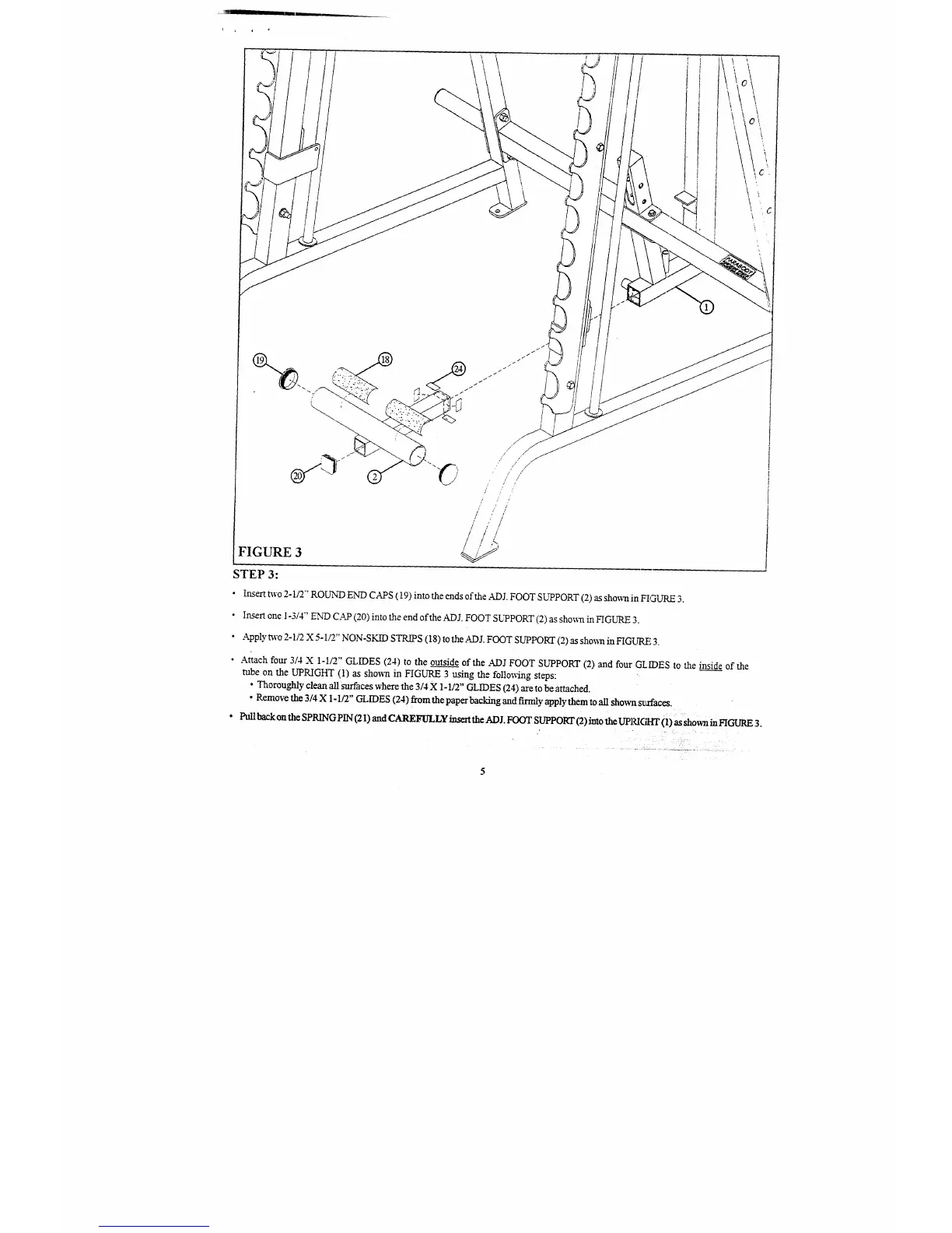 Insert two 2-1/2’ ROUND END CAPS (19) into the ends of the .ADJ. FOOT SUPPORT (2) as shown in FIGURE