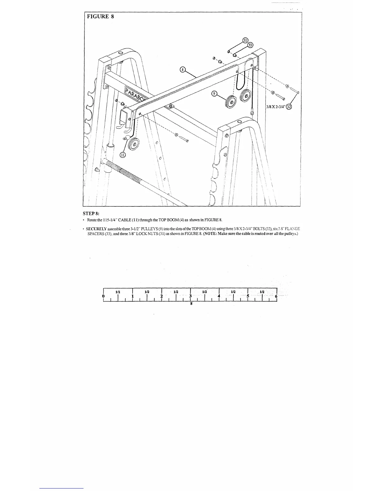 SPACERS (33), and three 3/8" LOCK N~’TS (31) as sho~.n in FIGLrRE 8. (NOTE: Make sure the cable is routed over "all the pulleys.)