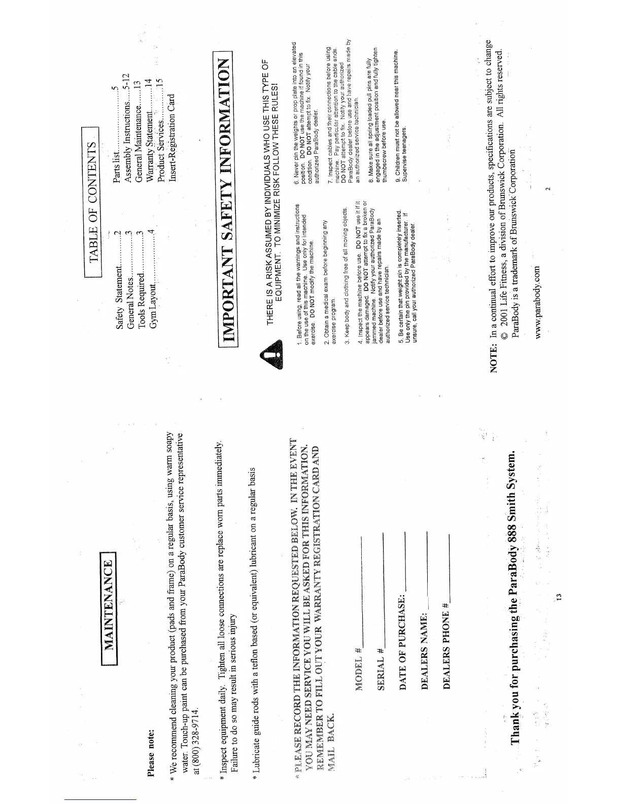 ParaBody 888 - Maintenance and Safety; Regular Maintenance; Daily Equipment Inspection; General Safety Instructions