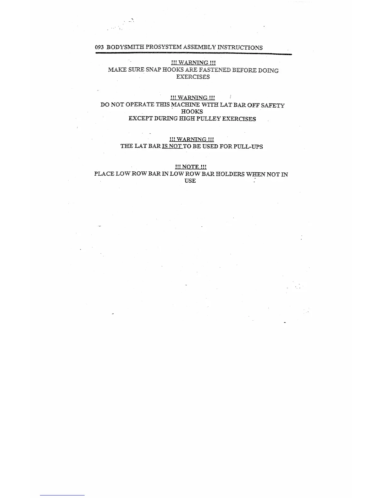 TI:~ LAT BAR IS NOT TO BE USED FOR PULL-UPS
