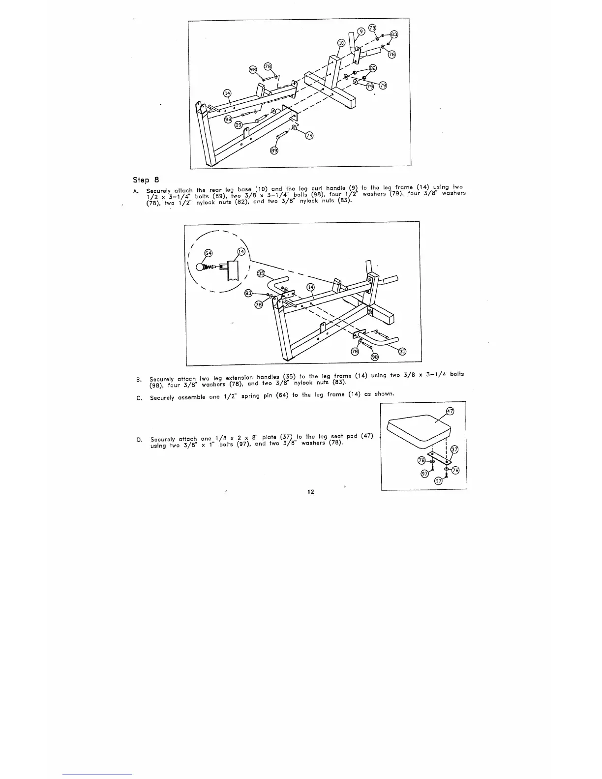 Securely ~H~ch on~,,1/B x 2 x plate (37) fo ~he leg se~ p~d (47)