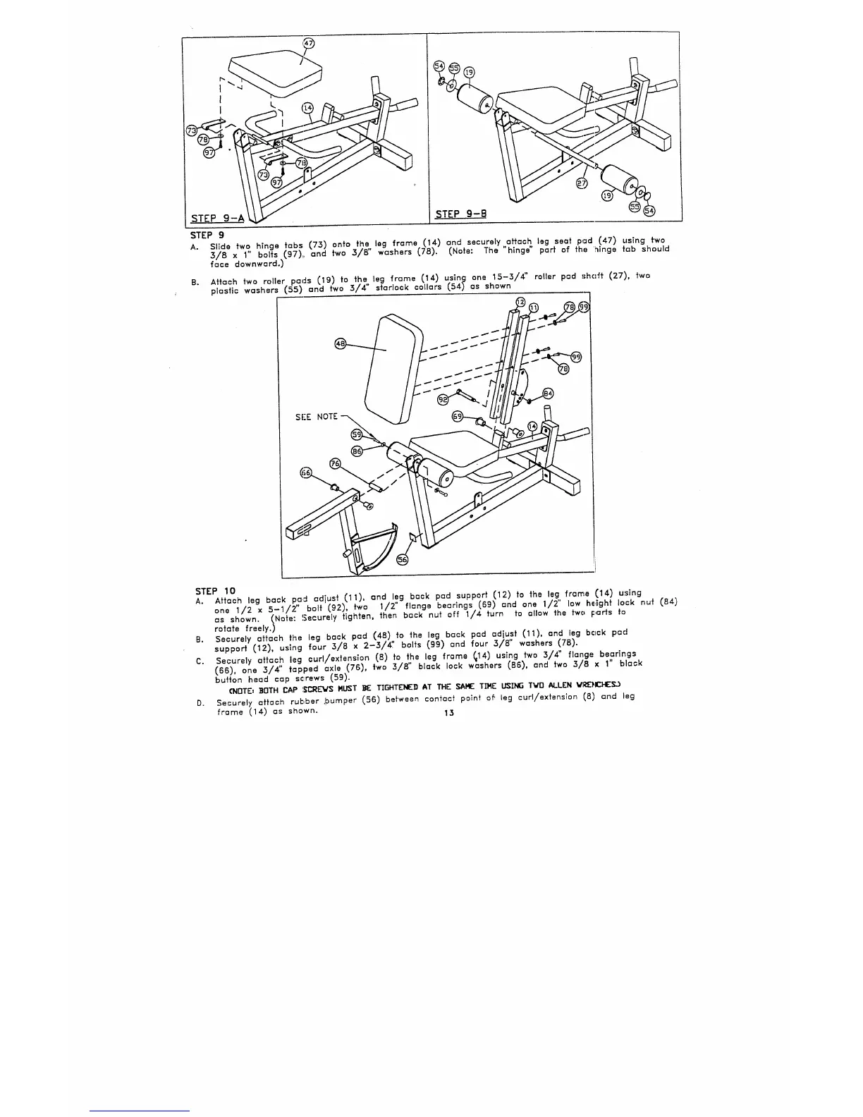 D. Securely attach rubber bumper (56) between :ontac~ point o~ leg curl/extenslon (8) ~nd