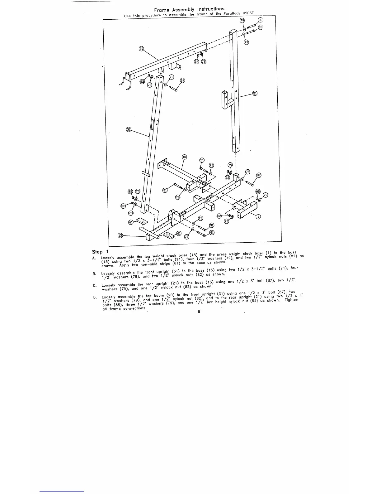 Use t’his procedure to ossemble the frame of the PareBody 950ST