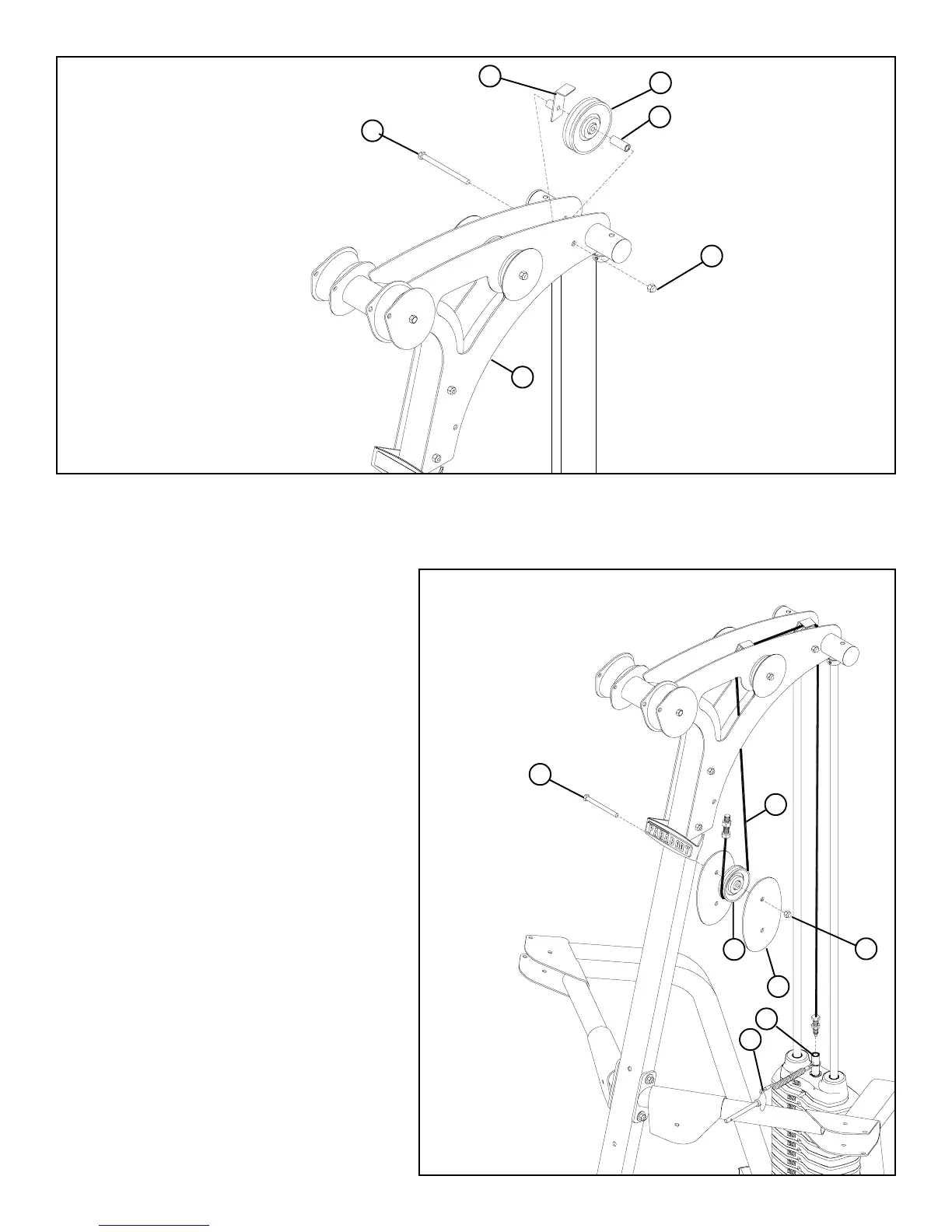 cable runs in the grooves of the pulleys.)