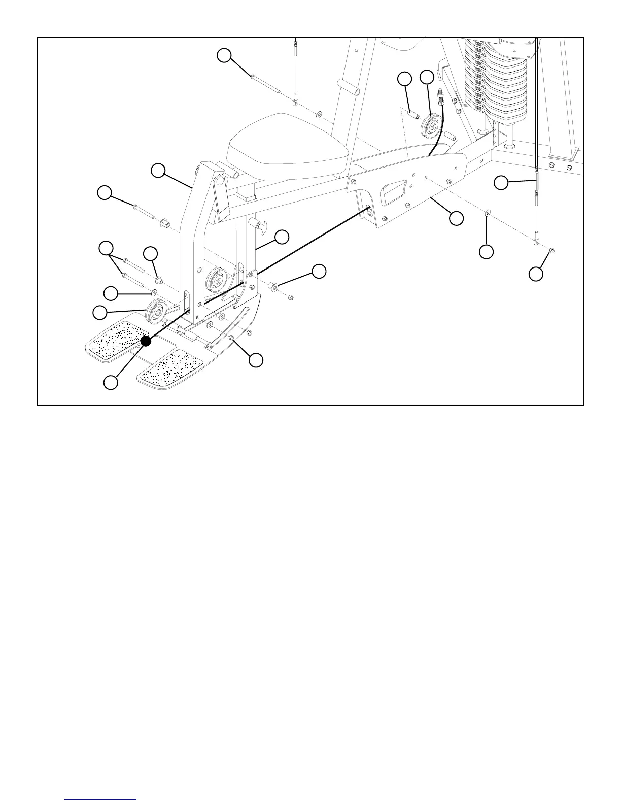 • Securely assemble the ball end of the LEG CABLE (30) and one 3-1/2” PULLEY (37) to the LEG PEDESTAL (8) using two 3/8 X