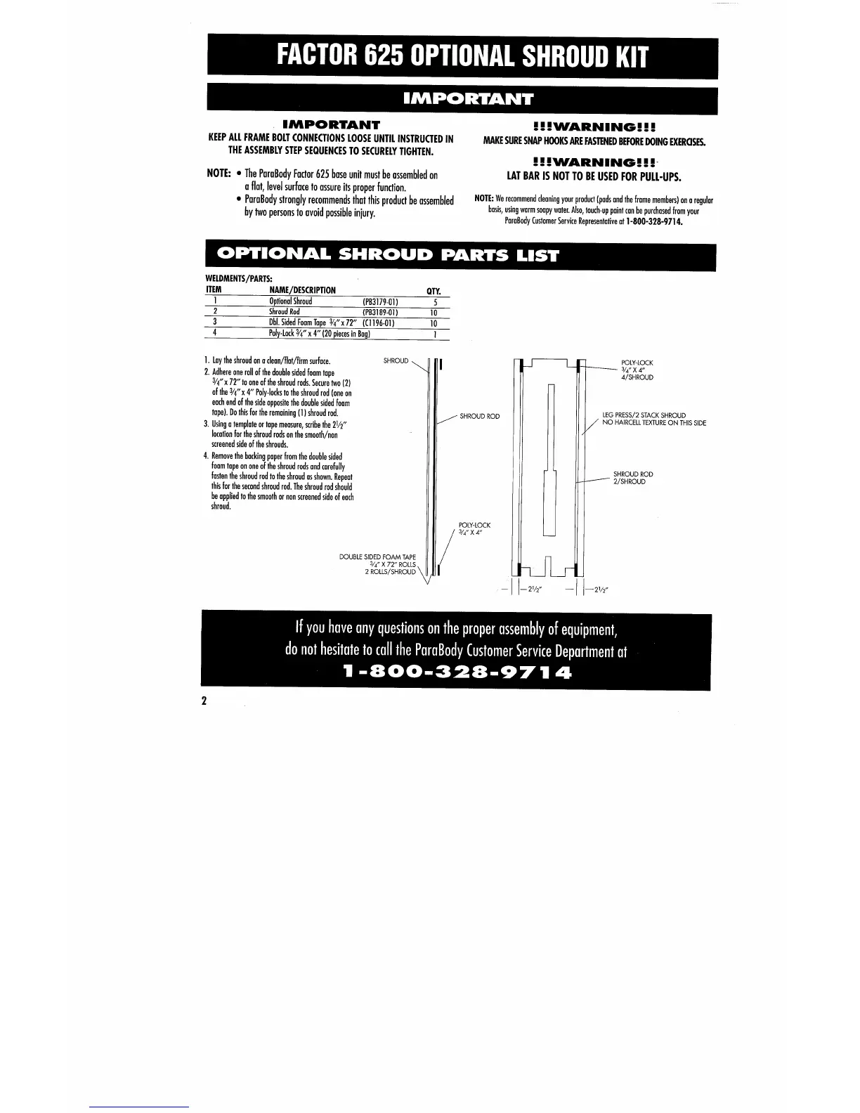 do not hesitate to call the ParaBody Customer Service Department at