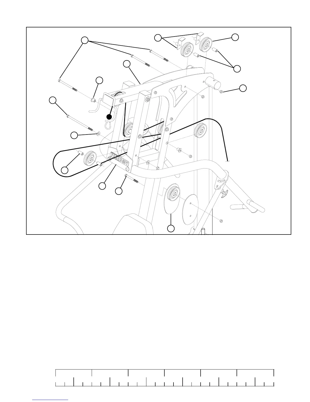 • Assemble one 3-1/2” PULLEY (24) into the PRIMARY PIVOT (9) lower hole using one 3/8 X 8-3/4” BOLT (31),