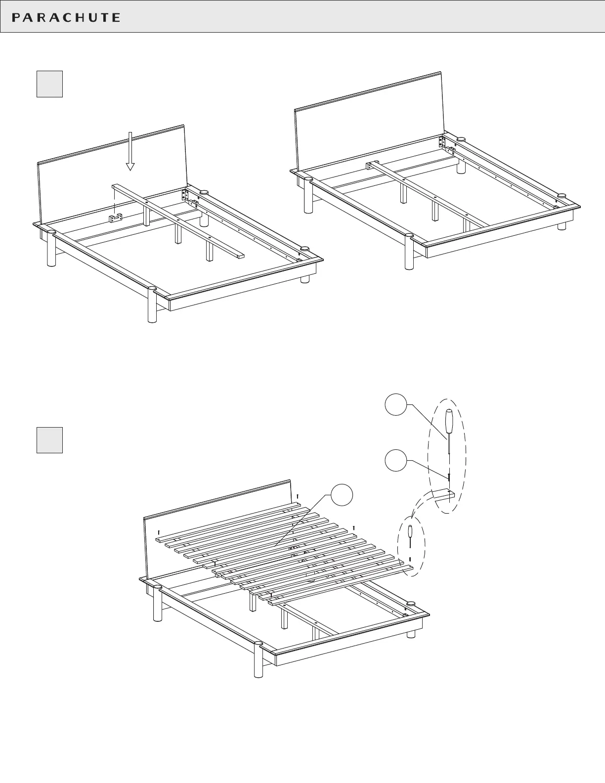 assembled bed frame. Loosely thread each screw (B4) into place on the top and bottom
