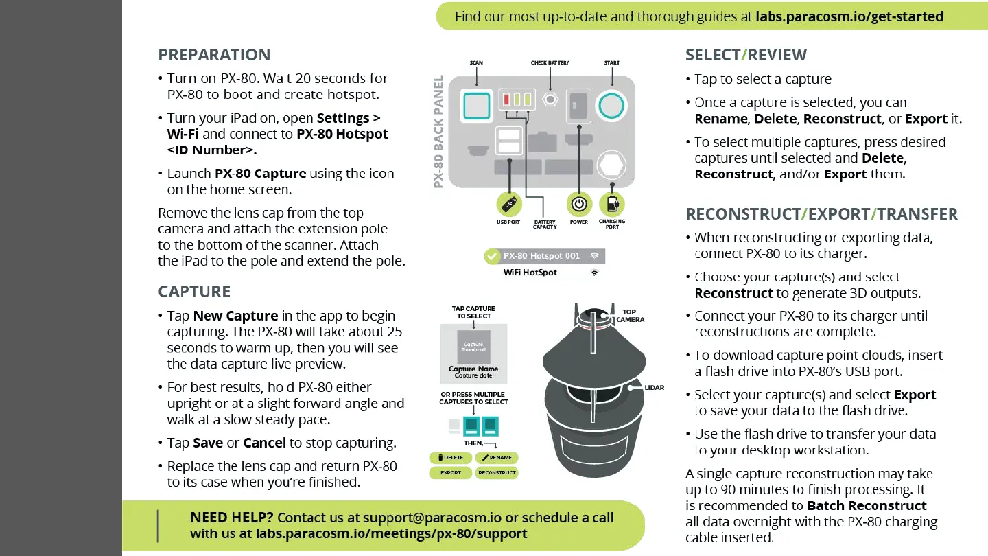 Paracosm PX-80 - Quick Start Guide; Preparation; Select;Review; Reconstruct;Export;Transfer