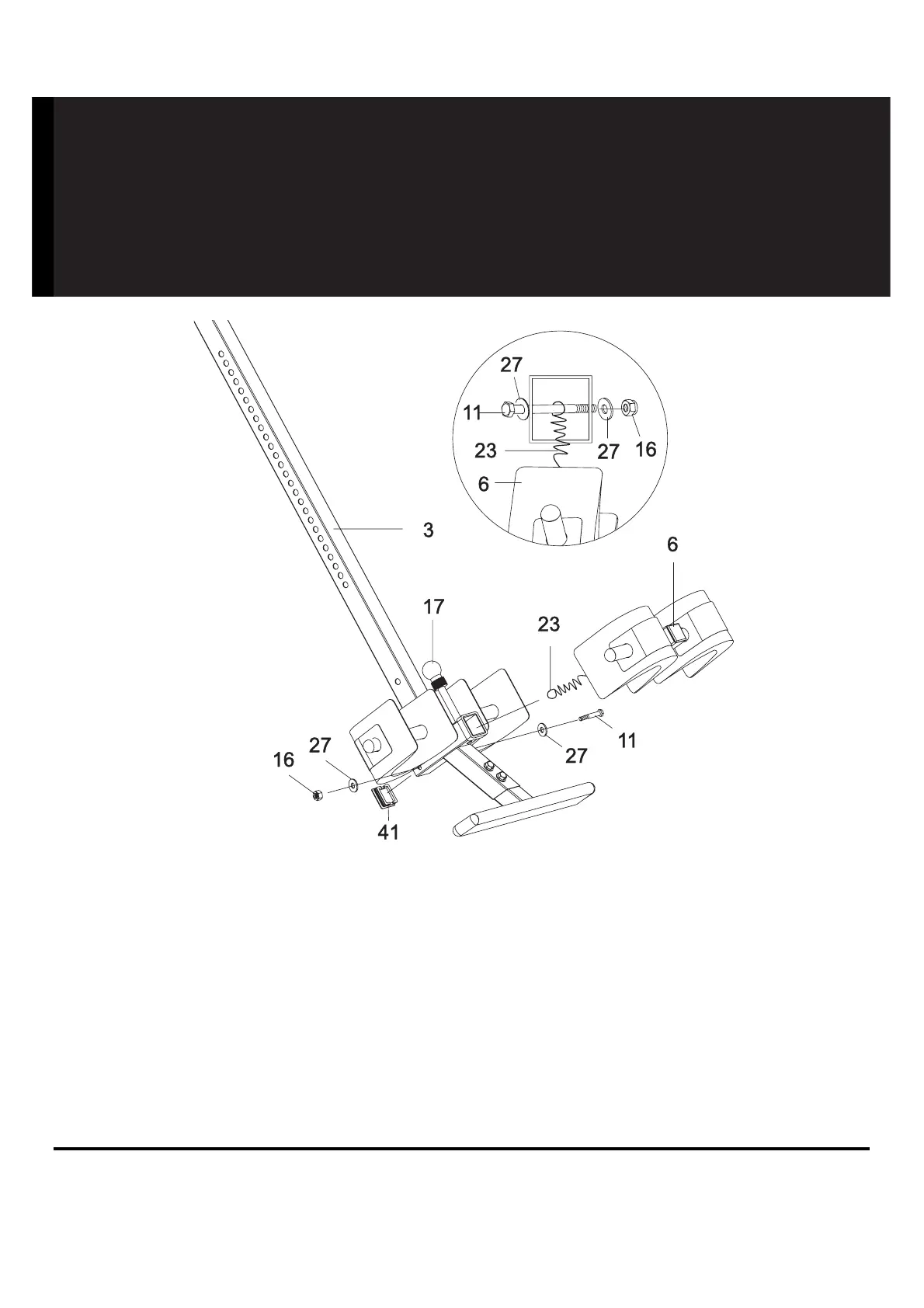 Frame (6) into the square bracket on the boom. Slide the Adjustable Instep Frame (6) completely