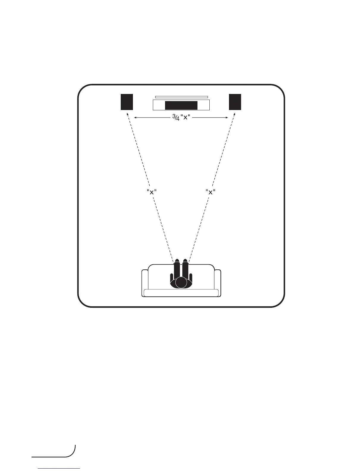 (“X”). For best imaging, place speakers from three-quarters of that distance