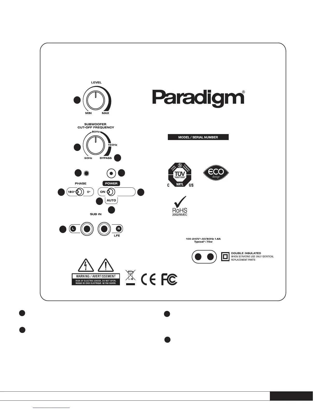 Équilibre le niveau de sortie du caisson de sous-graves vers vos enceintes.