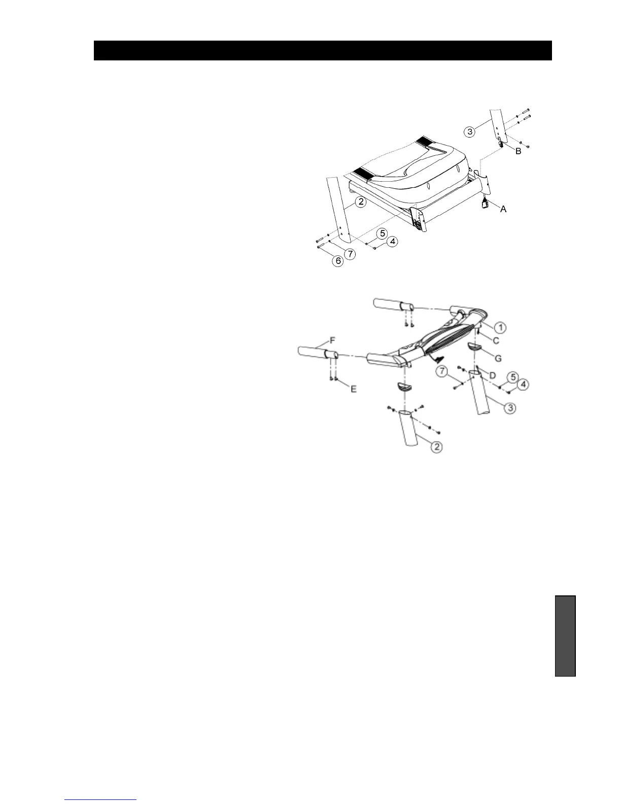 Secure the console base (1) to the upright