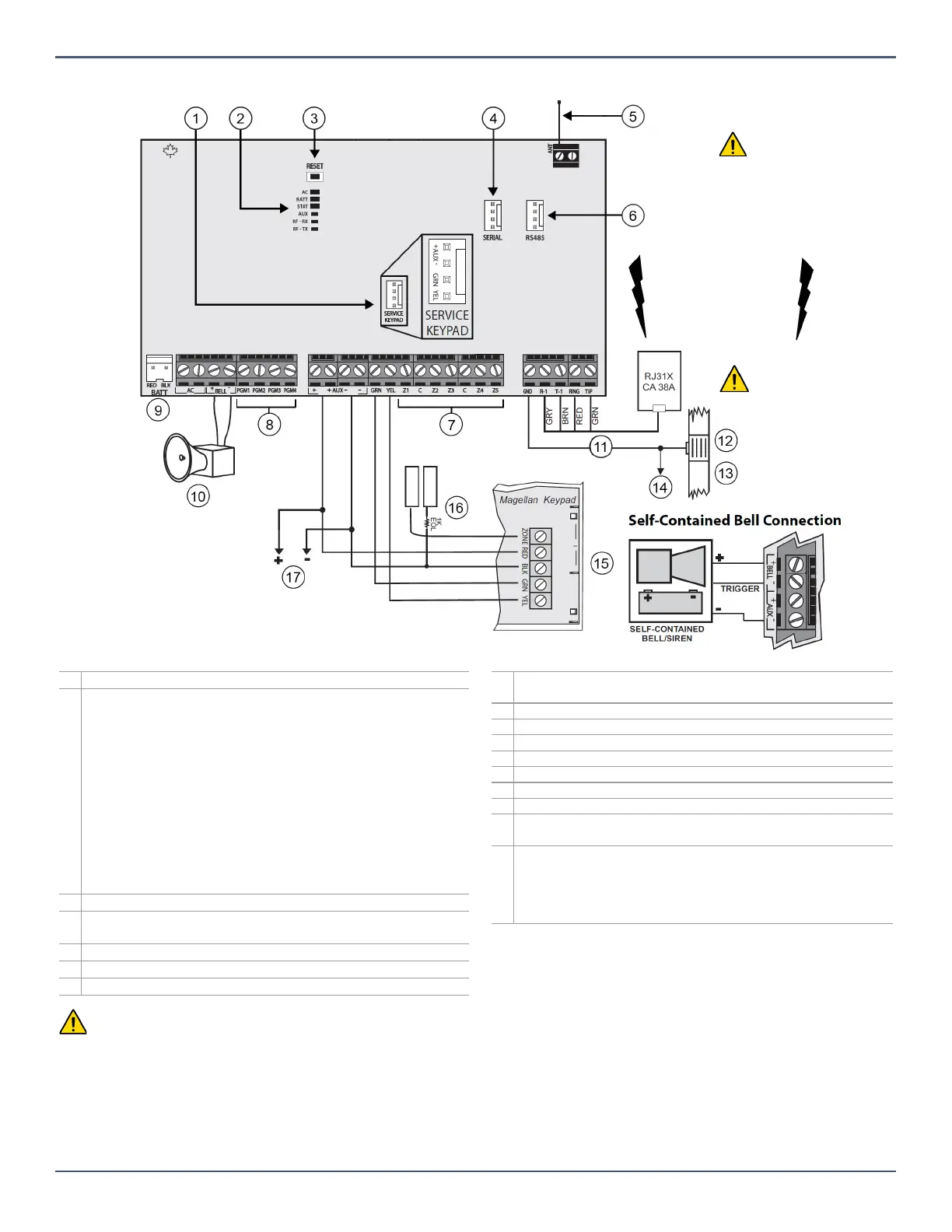 BELL and AUX must be limited to 1.3A. Exceeding this limit will overload the panel power supply