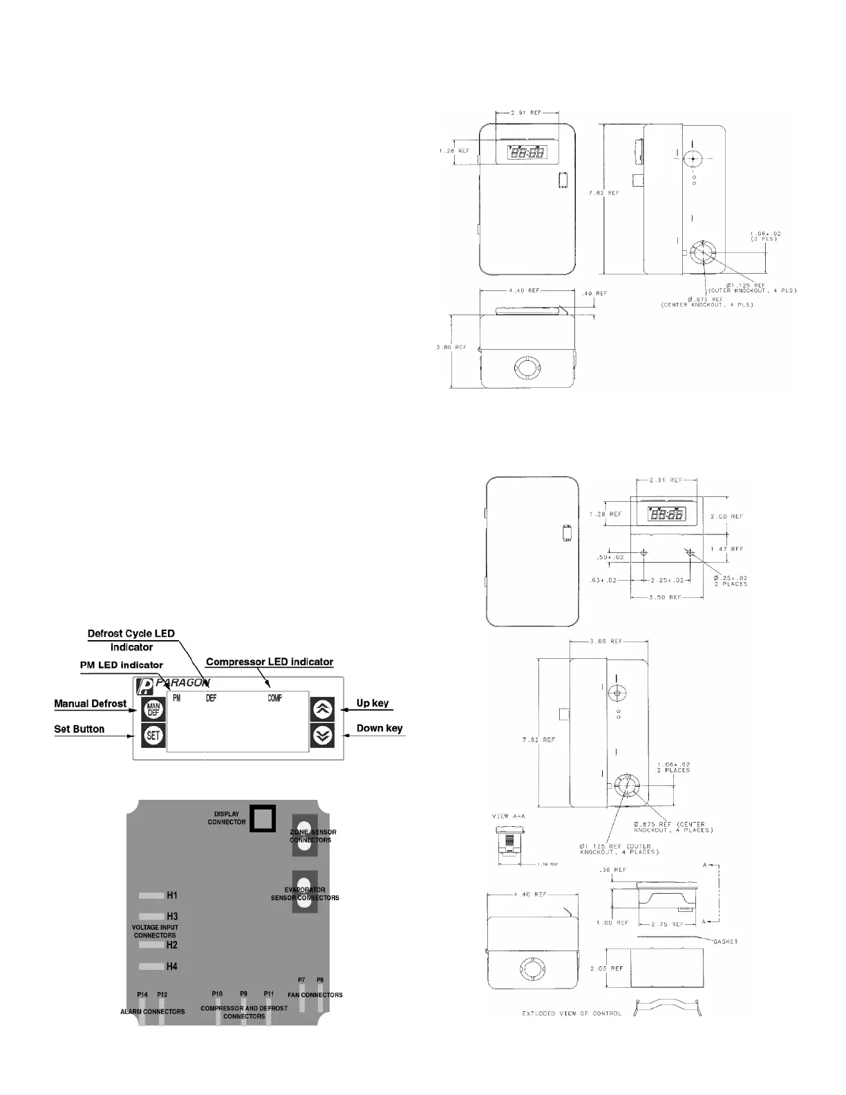 Paragon ERC-2 - Graphic Description; Dimensions; Display Layout; Relay Board Layout; Overall Dimensions - Metal Case; Integrated Display Module