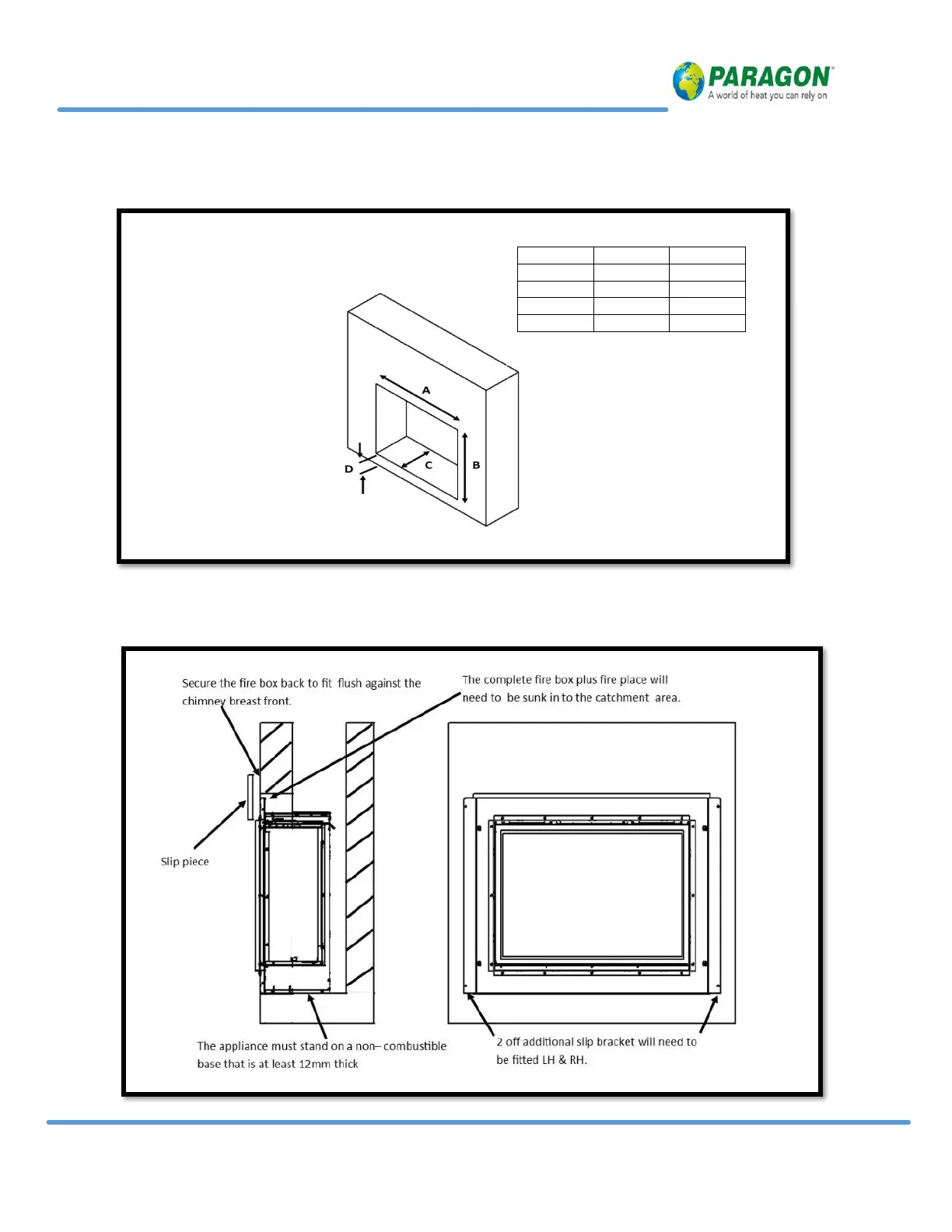 A- B-C / Builder’s opening aperture size when fitting hole in the wall boarded edge or slips.