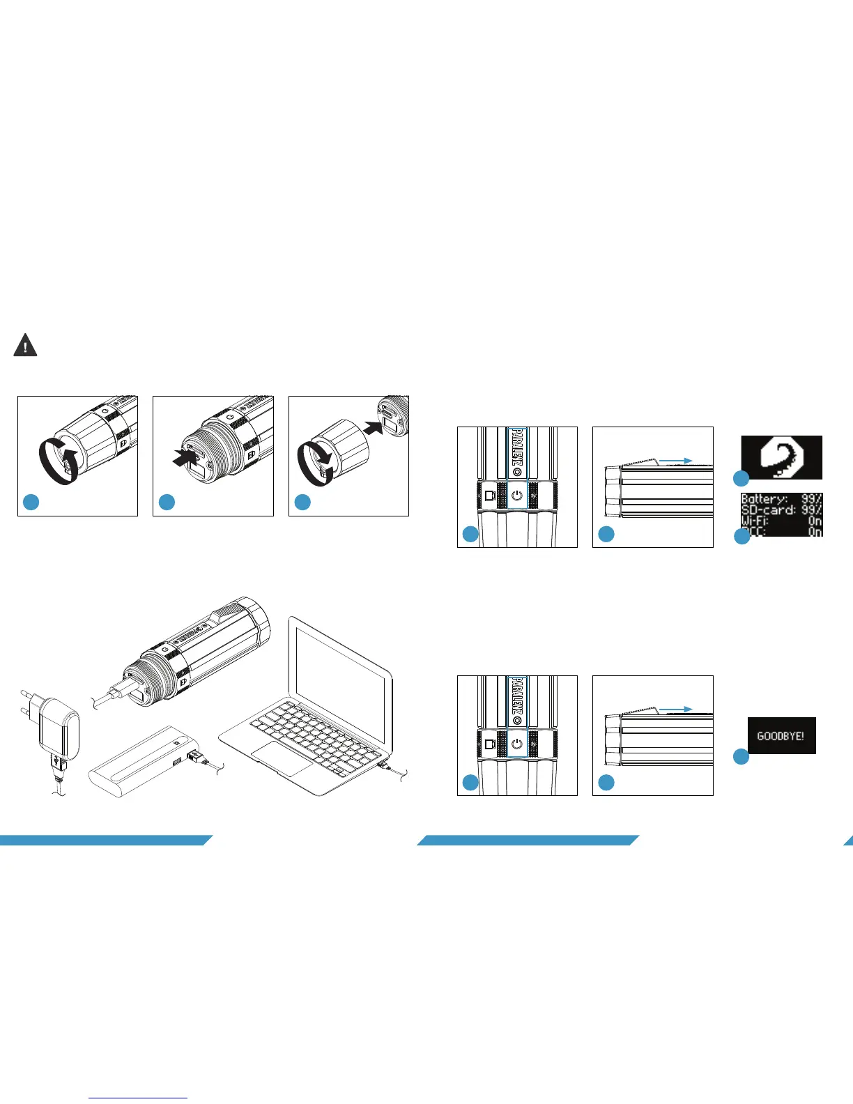 display will show the Paralenz logo and the camera will vibrate.