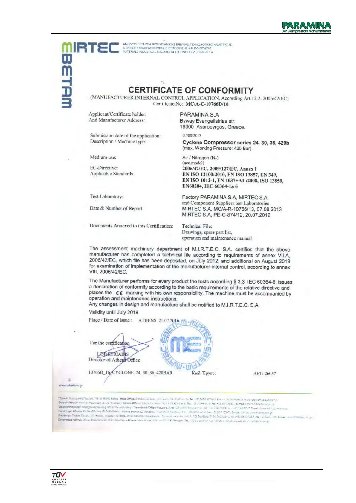 Fax: 0030 210 5575868, email: service@paramina.gr - website: www.paramina-compressors.com