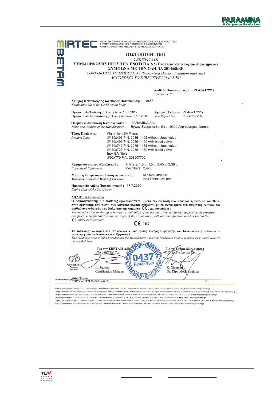 Fax: 0030 210 5575868, email: service@paramina.gr - website: www.paramina-compressors.com