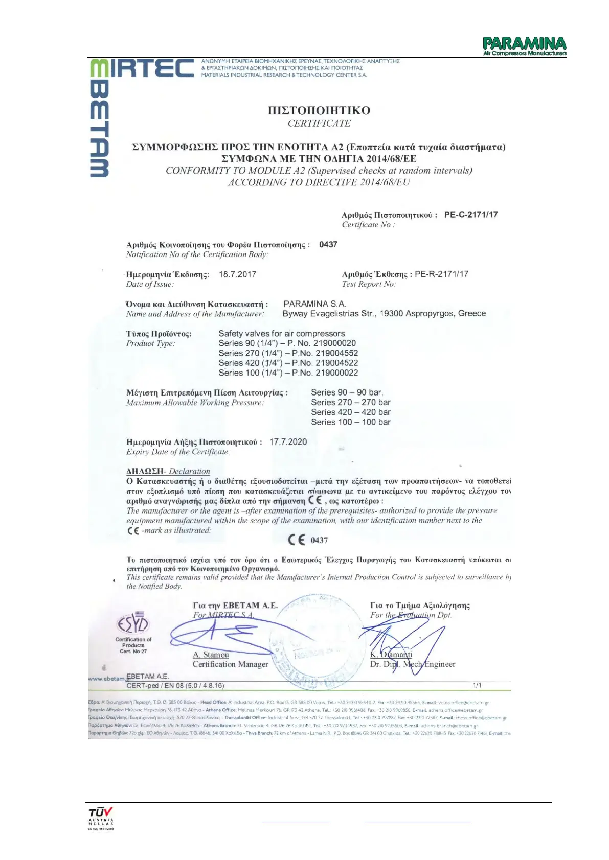 Fax: 0030 210 5575868, email: service@paramina.gr - website: www.paramina-compressors.com