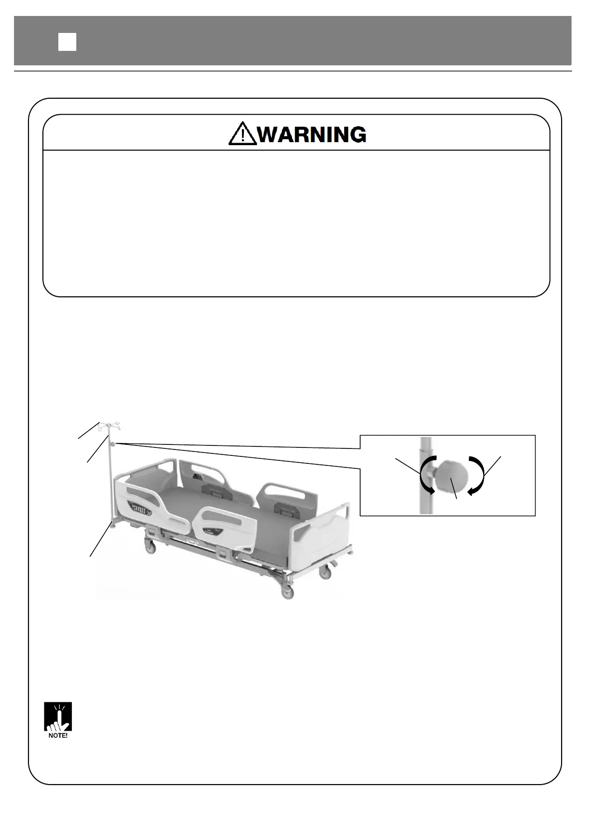 ●Do not use the IV pole as a support to stand up. The IV pole may come off or break, causing an