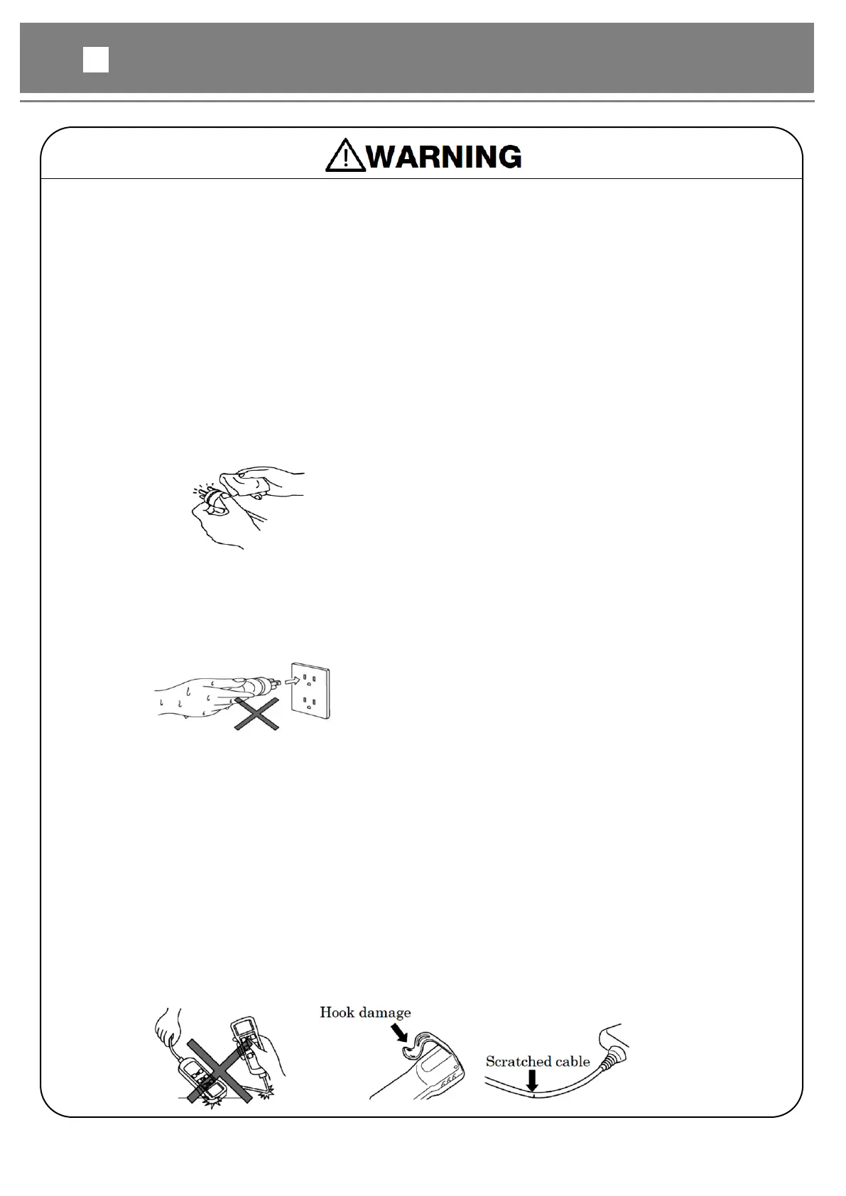 The power plug or cables may get damaged and short circuit, resulting in electric shock or fire.
