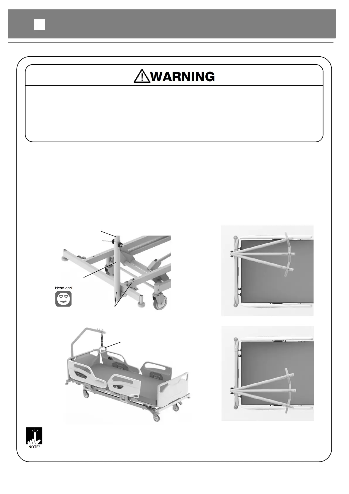Attach the parts of the lifting pole to the bed as shown in figure. The parts can be attached on