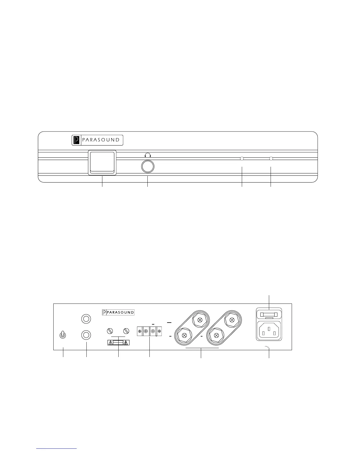 Parasound ZAMP - Zamp Front and Rear Panel Drawings; Zamp Front Panel Overview; Zamp Rear Panel Overview
