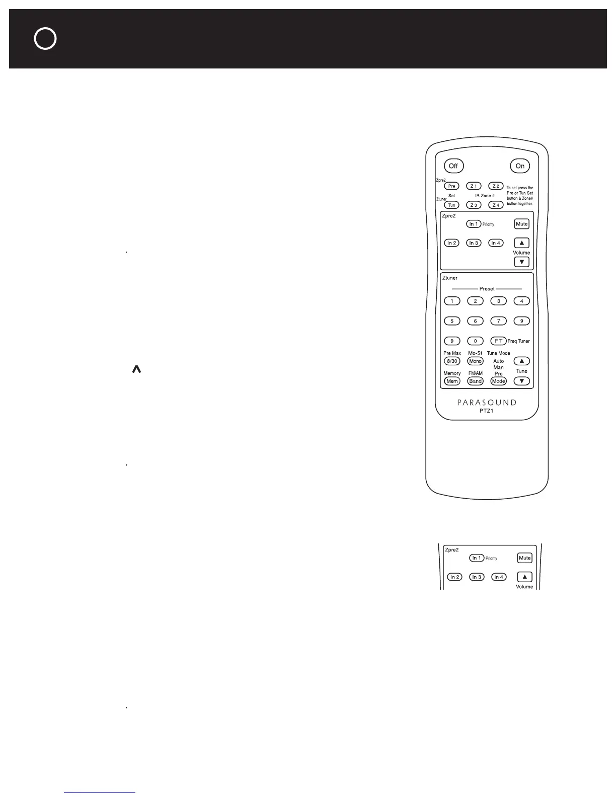 1-4 IR Zone # buttons are for the Zpre2. The tuner buttons control the matching Parasound Ztuner.