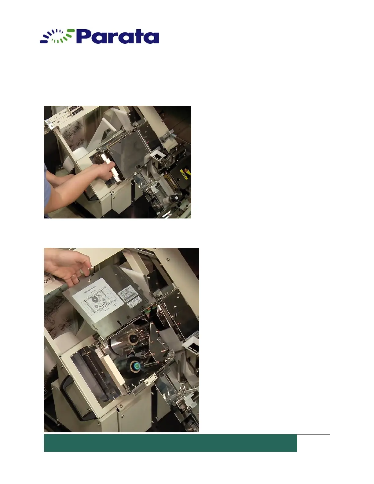 4. Open the printer assembly cover, by pulling up on the black knob. You will see that the