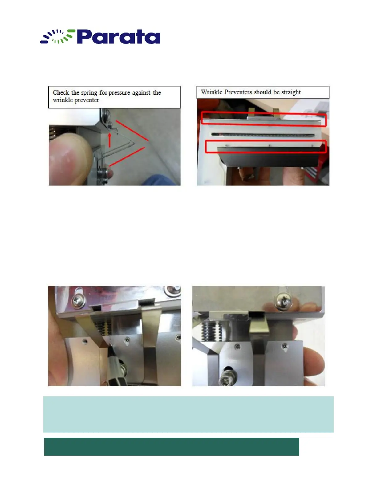 dents. The spring above the depth adjustment screw should push the wrinkle preventer