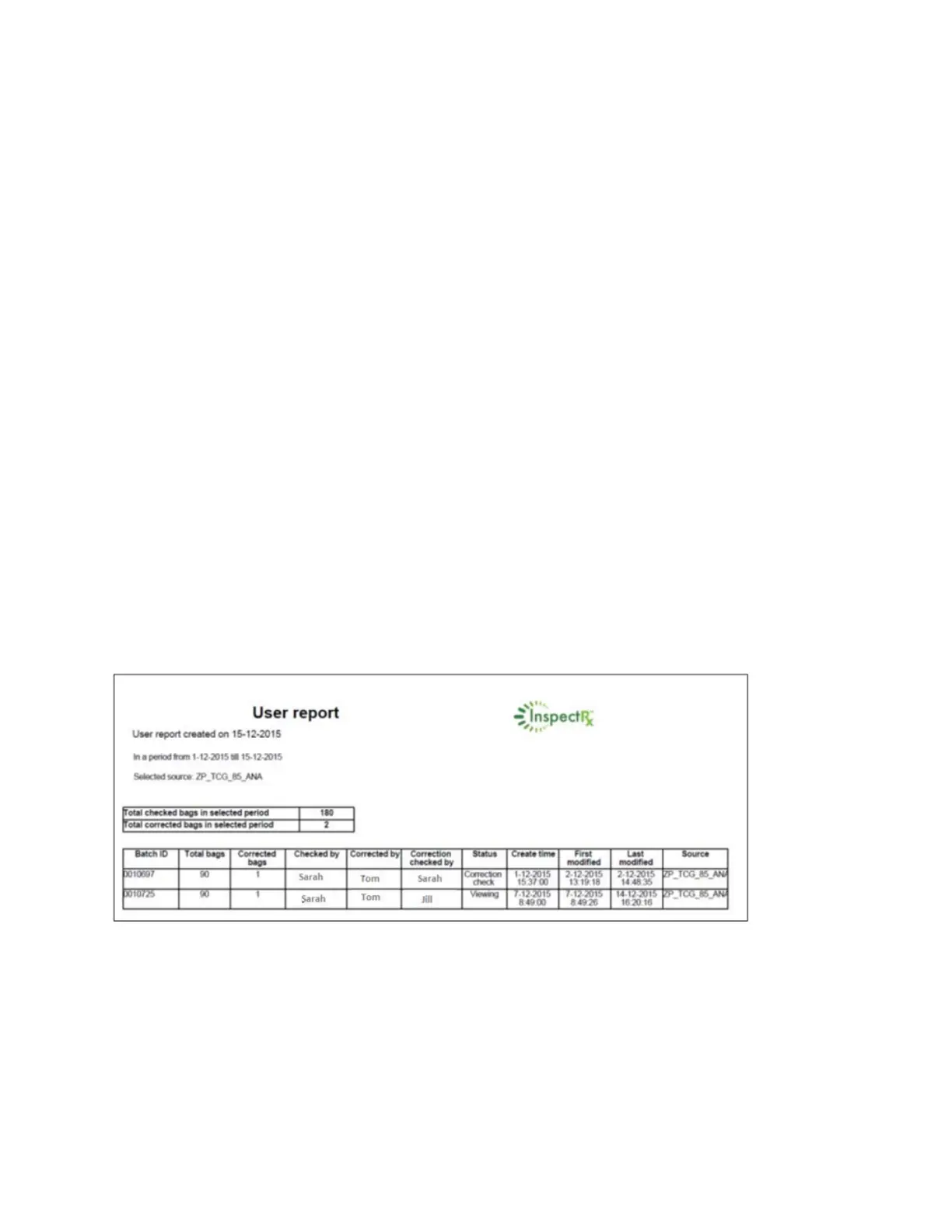 • Report itemized by Batch / Bag / Patient