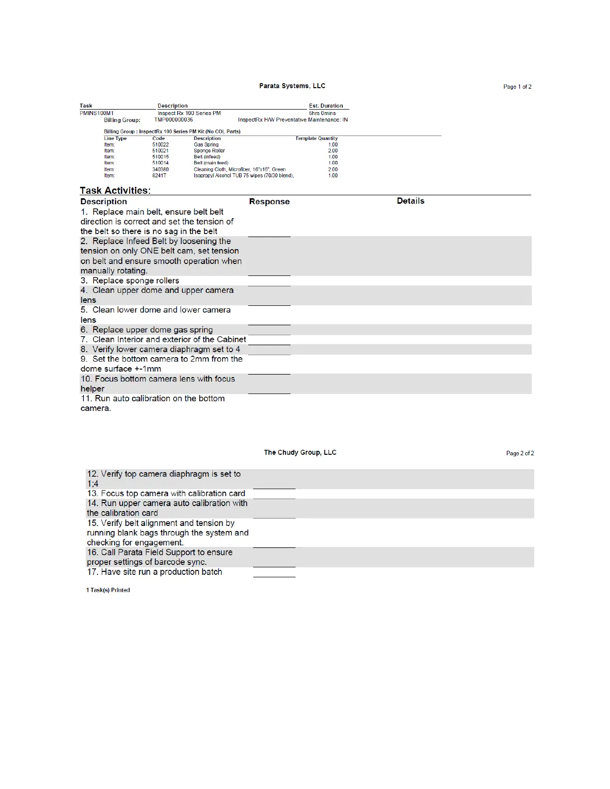Parata InspectRx200 - InspectRx PM Process CheckList