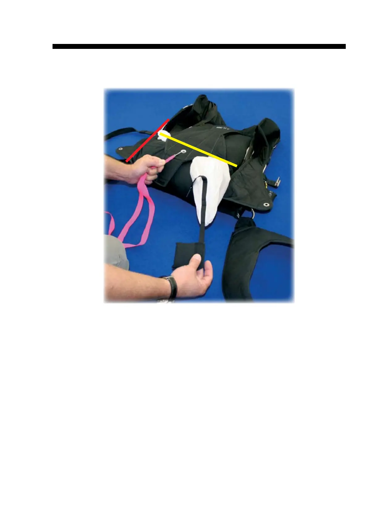 Place the pilot chute on top of your main bag. It should follow in position the