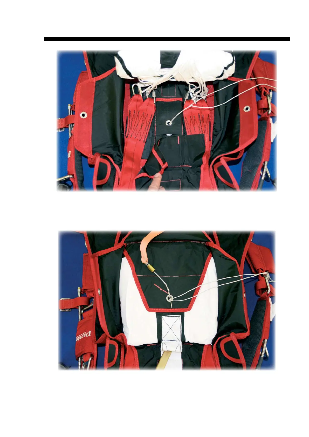 Close flap # 1 and stow the 3 point x stitch connection to the bridle