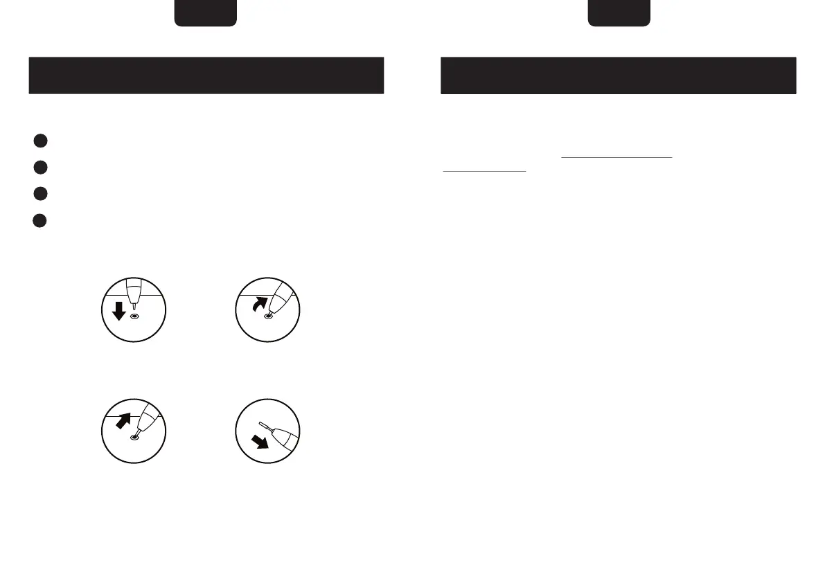 펜을 경사지어 펜심을 작은 구멍에 고정시키고.