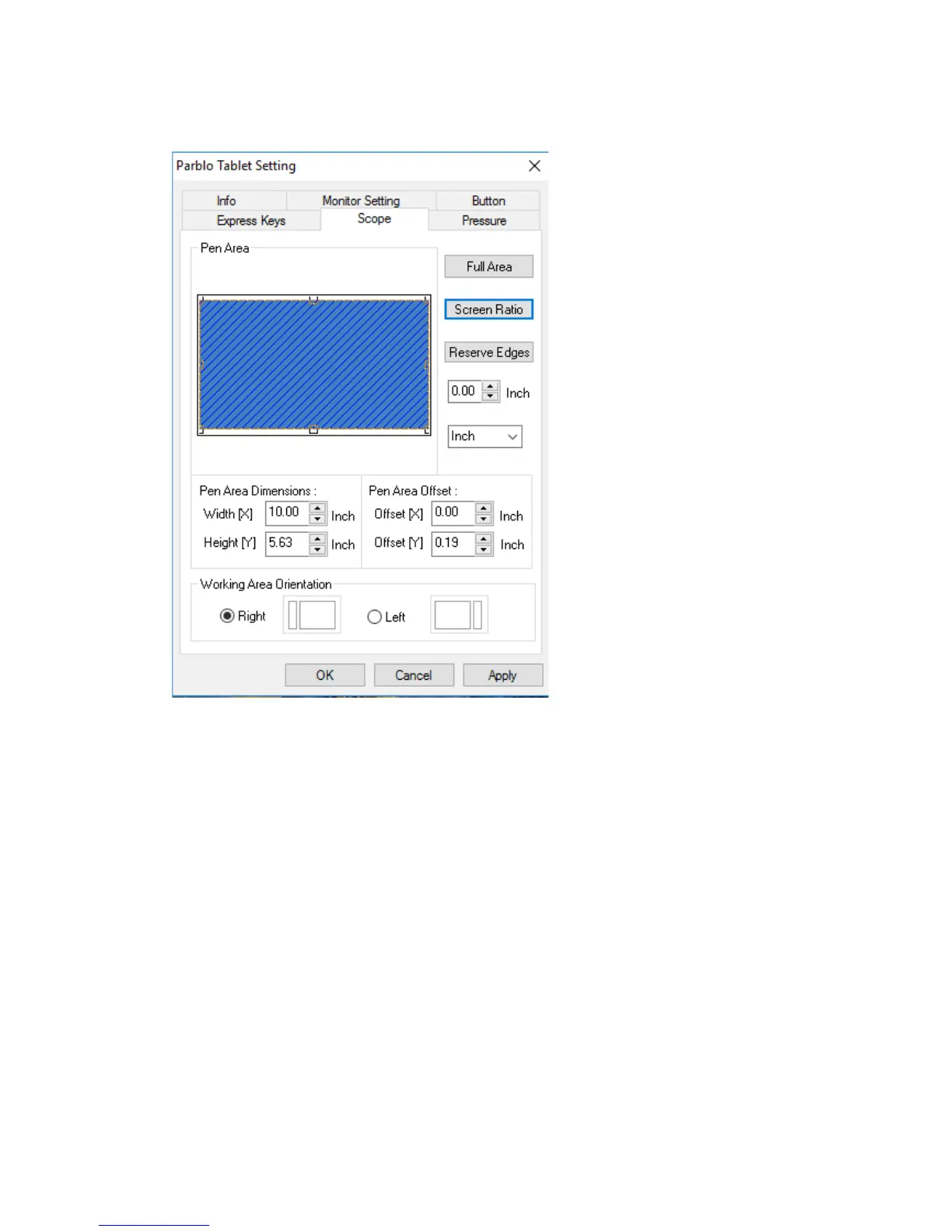 Parblo A610s - Pen Area and Scope Settings