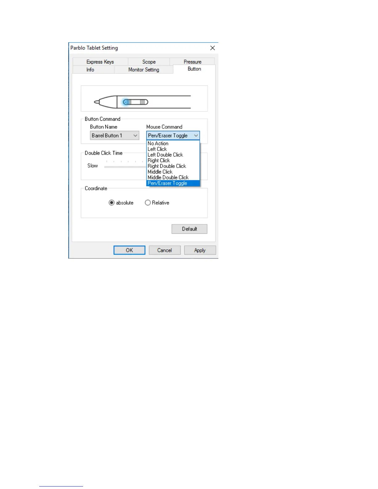 Key”, “Middle Double-click”, “Pen/Eraser Toggle”