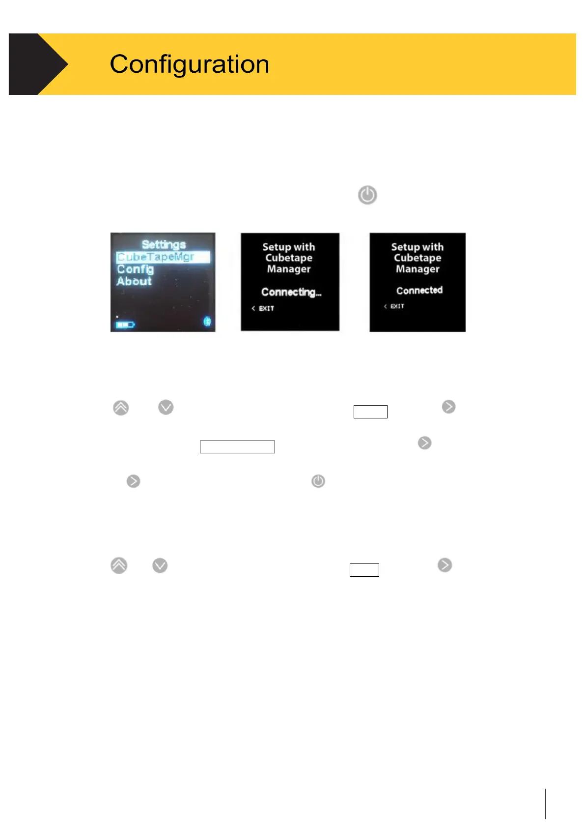 The display shows “Setup with CubetapePRO Manager.” See Figure 3-1.