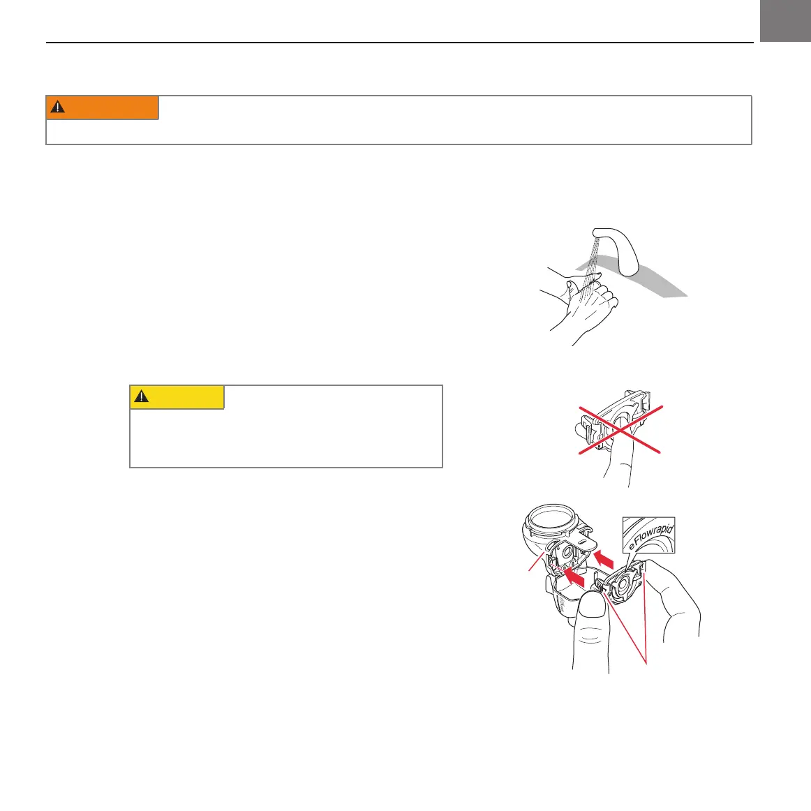 Skref H1 Þvoðu hendurnar með vatni og sápu.