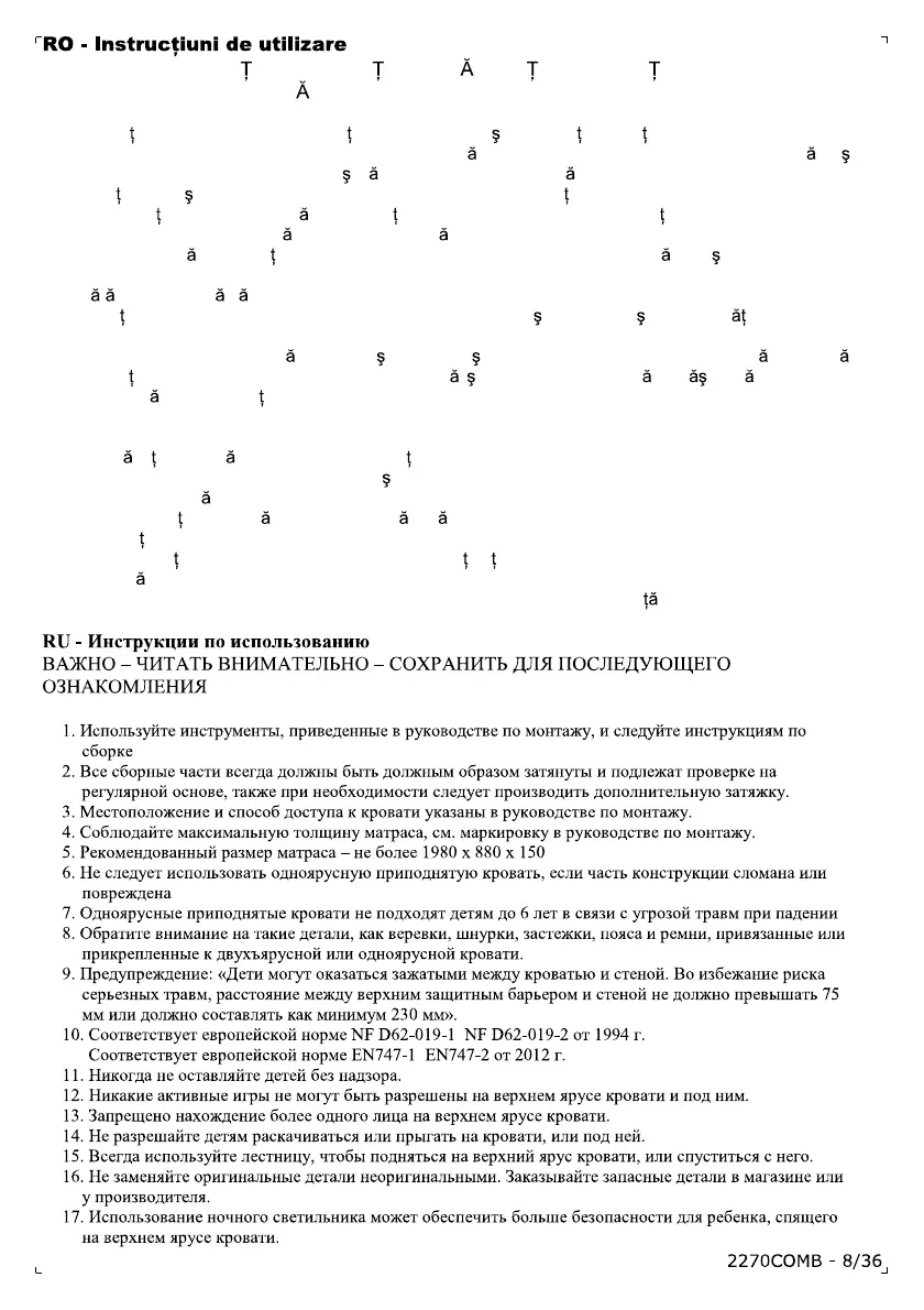 6. Este indicat s nu utiliza i patul supraetajat atunci când o parte din structur lipse te sau s-a rupt.