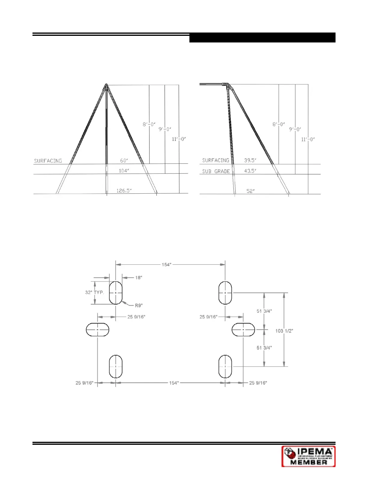 8’ TRI-POD FOOTING ELEVATION - END 8’ TRI-POD FOOTING ELEVATION - SIDE