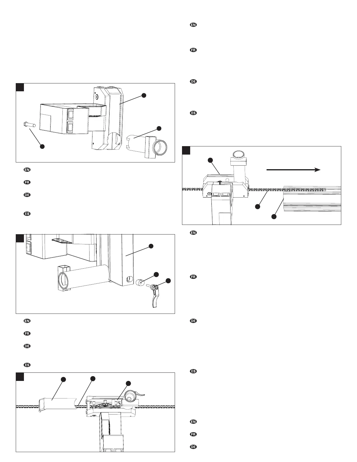 C. Retire la cubierta (#4) del sistema de deslizamiento y coloque la cade-