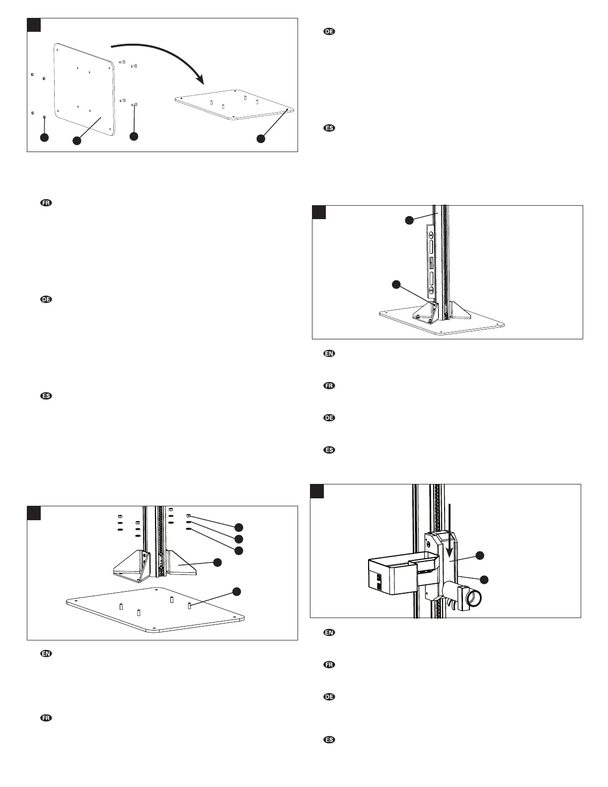 (not included) to secure upright supports (#1) directly to floor.