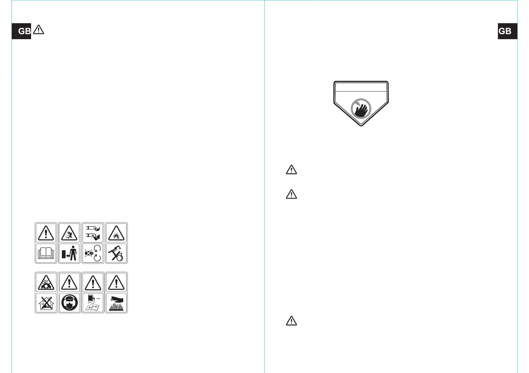 While mowing, always wear substantial footwear and long trousers. Do not operate the