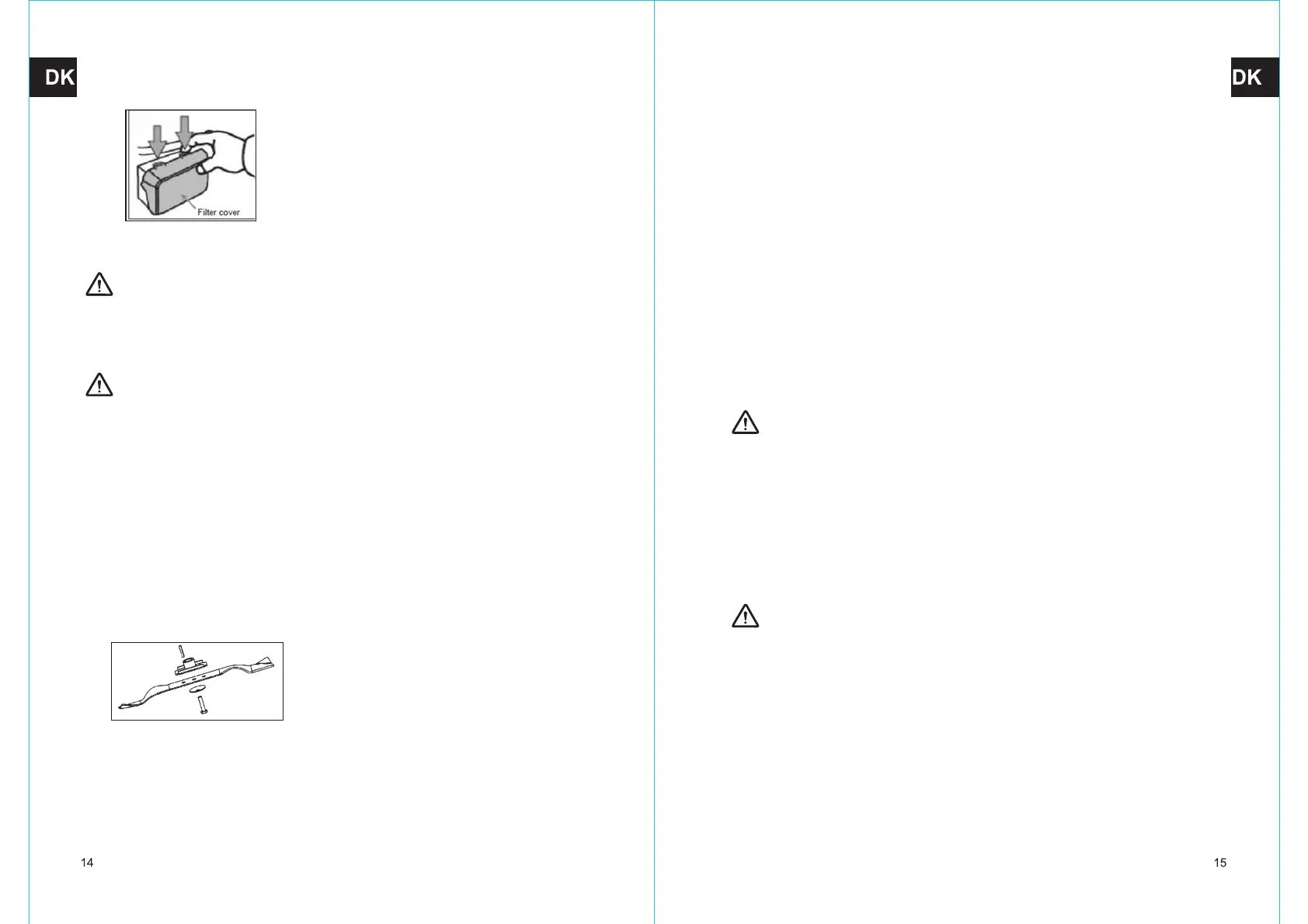 balance, medfører voldsomme vibrationer, så motoren og plæneklipperen risikerer at tage skade.