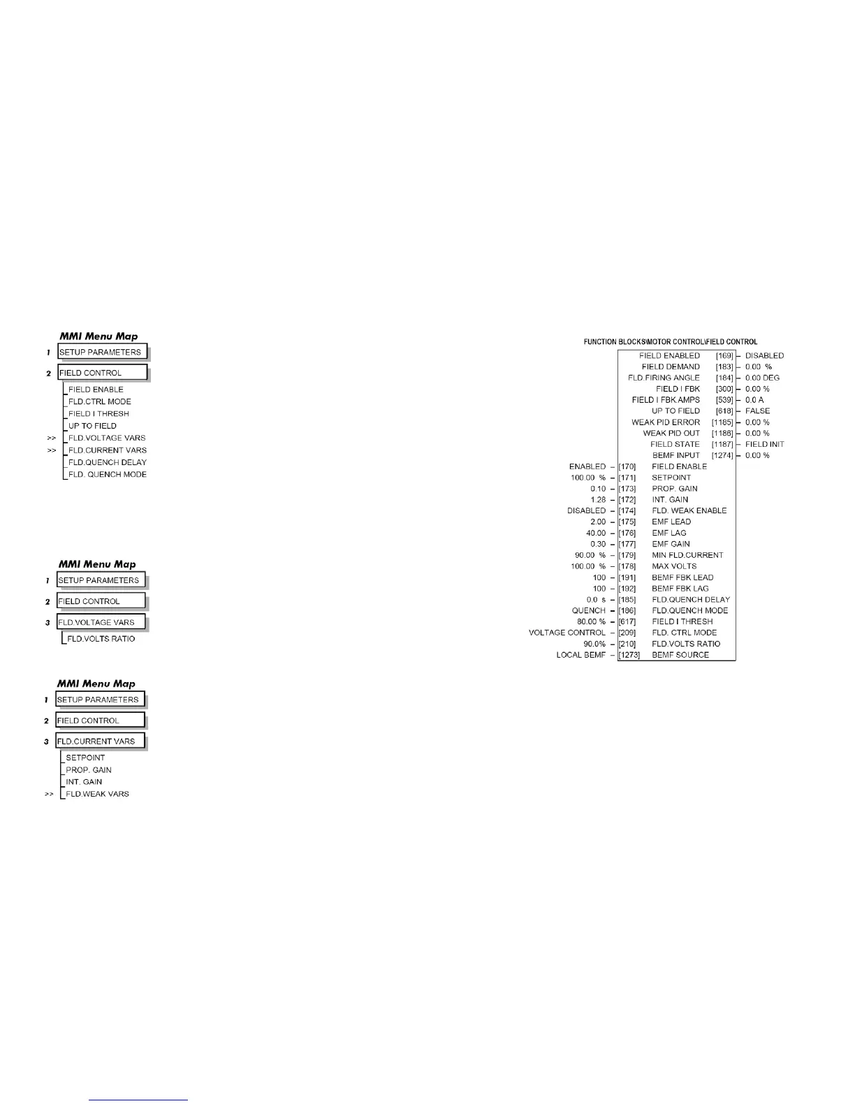 The FIELD CONTROL function block is viewed in three sub-menus on the MMI: